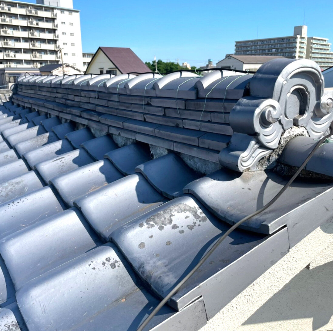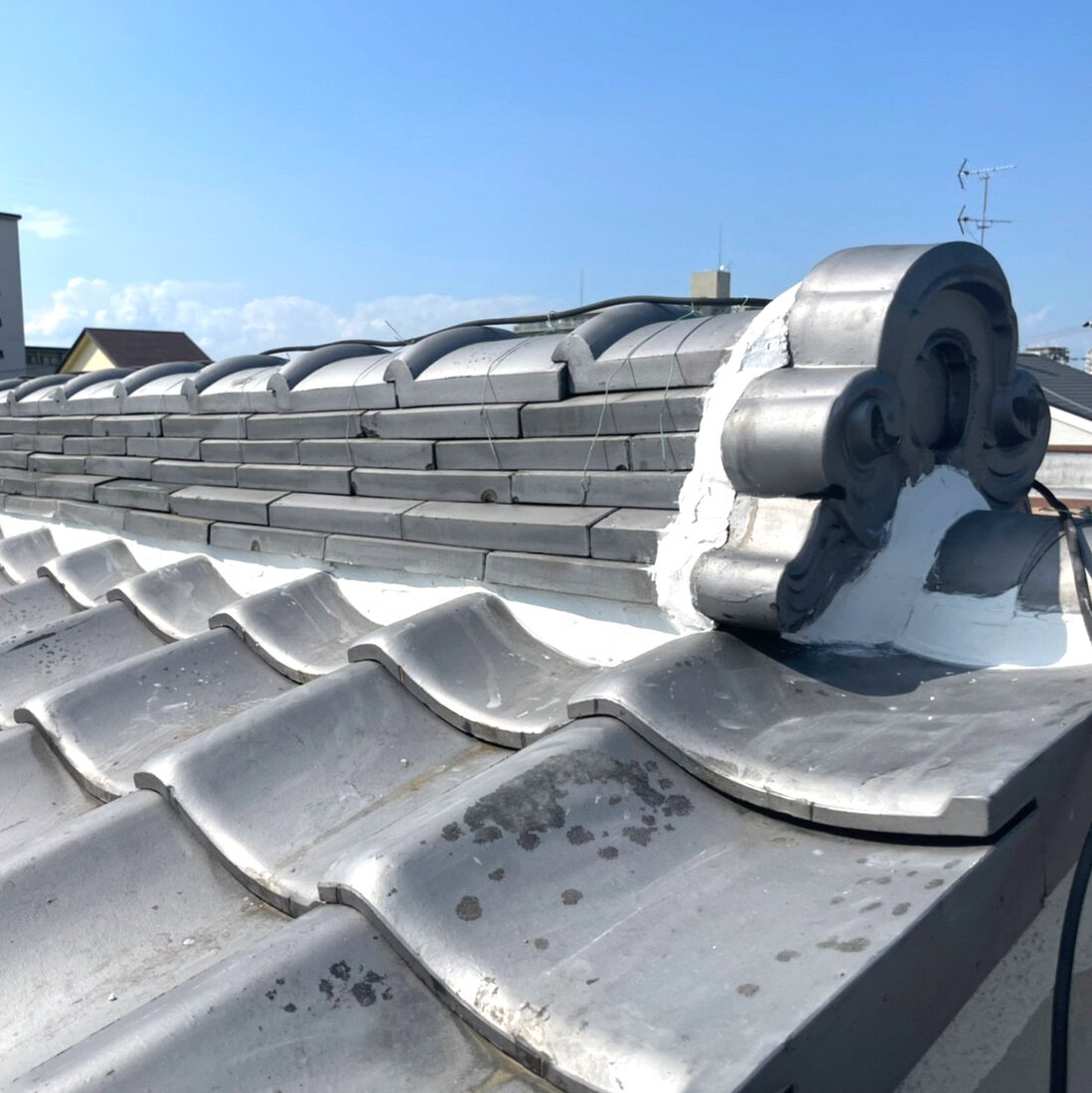 以前弊社で外壁塗装工事を承った住宅の屋根の漆喰工事を行いました。