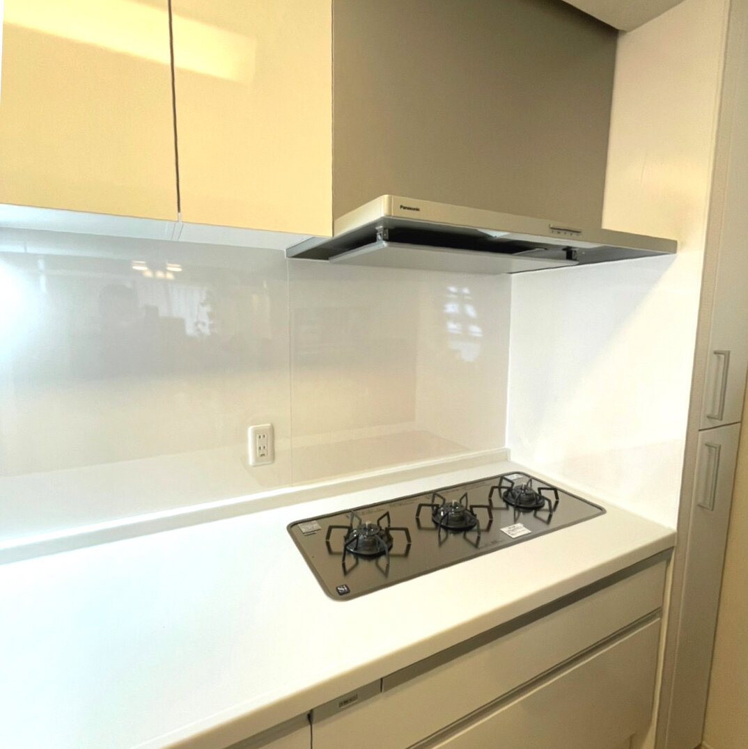 トリプルワイドコンロは横一列に並んでいるので、とても料理がしやすいのが特徴です。汚れが落ちやすく、傷にも強いスゴピカ素材で最初のキレイが長く続きます。