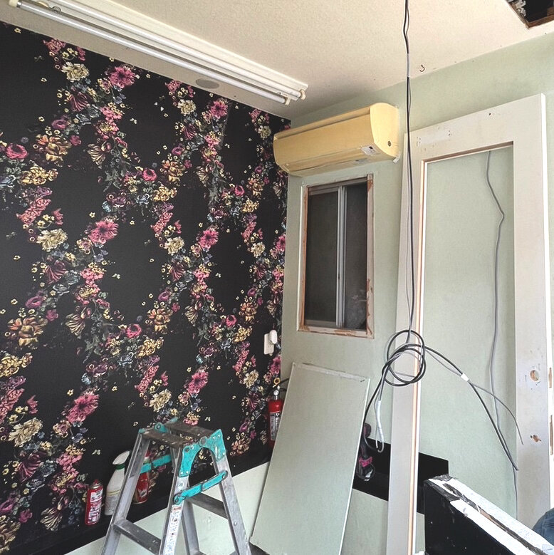 クロスや床材を撤去し、ホワイト系のクロスと床材を貼ります。