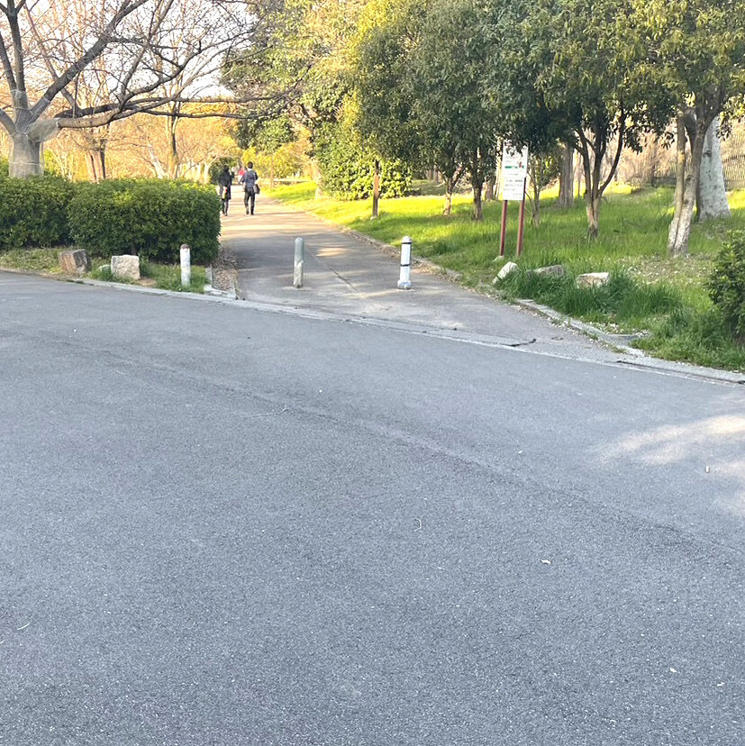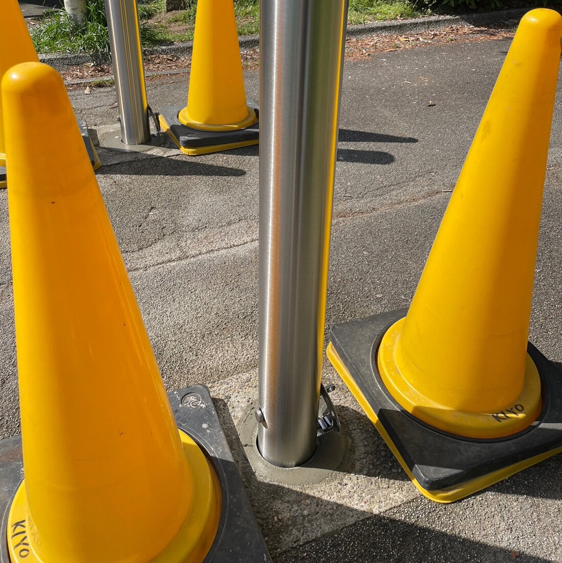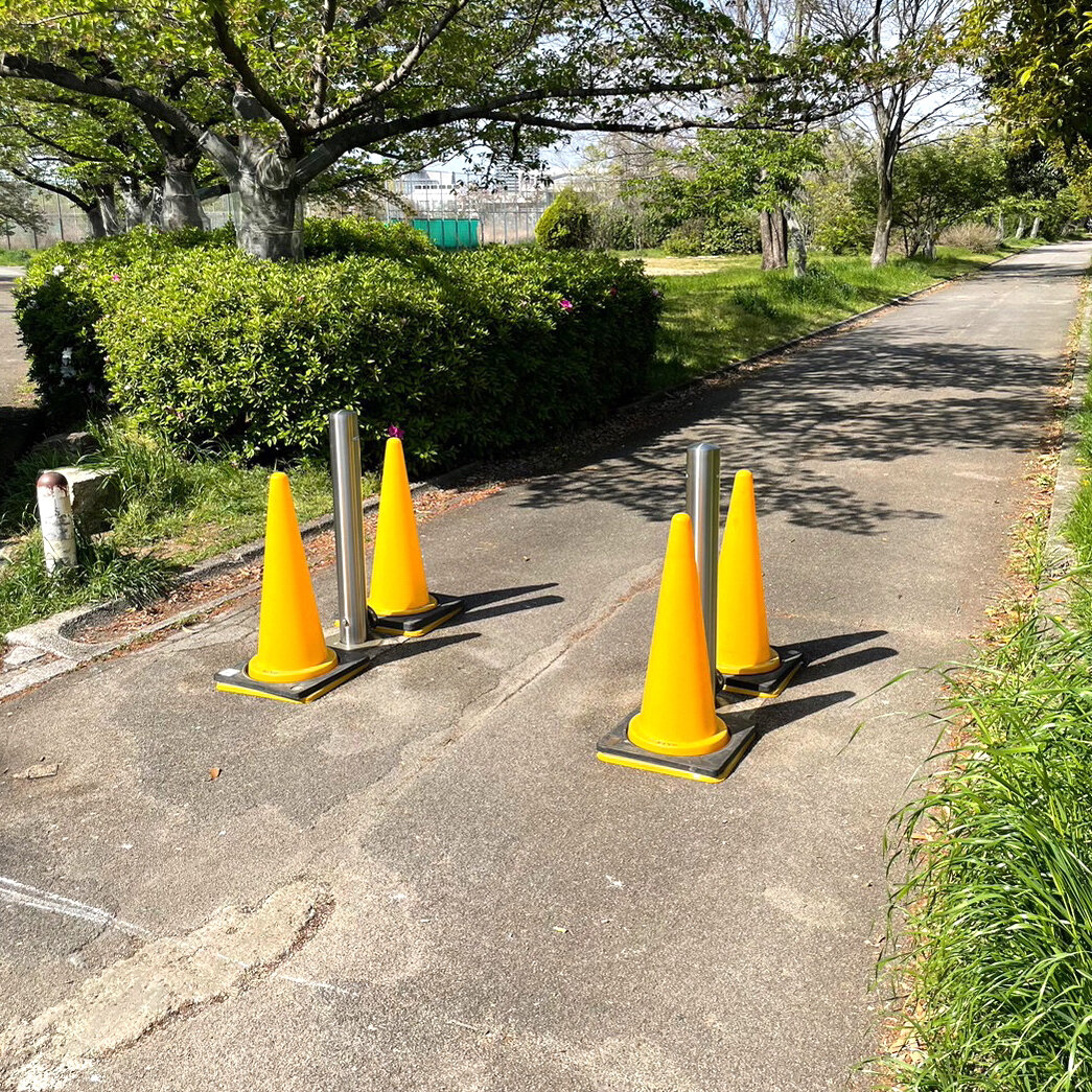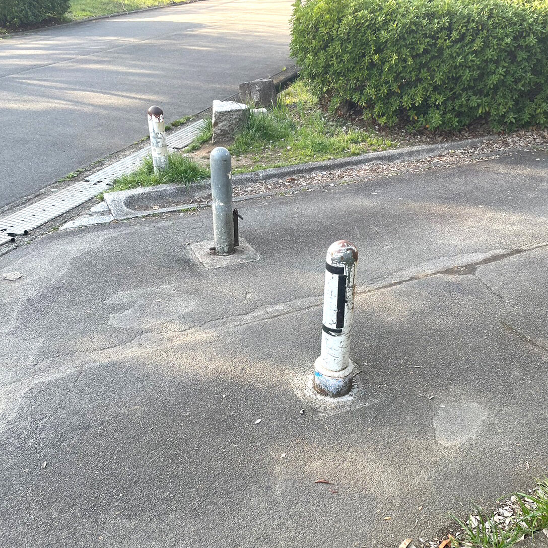 大仙公園の歩道にあるポールを固定式のものから出し入れできるタイプのものに交換しています。