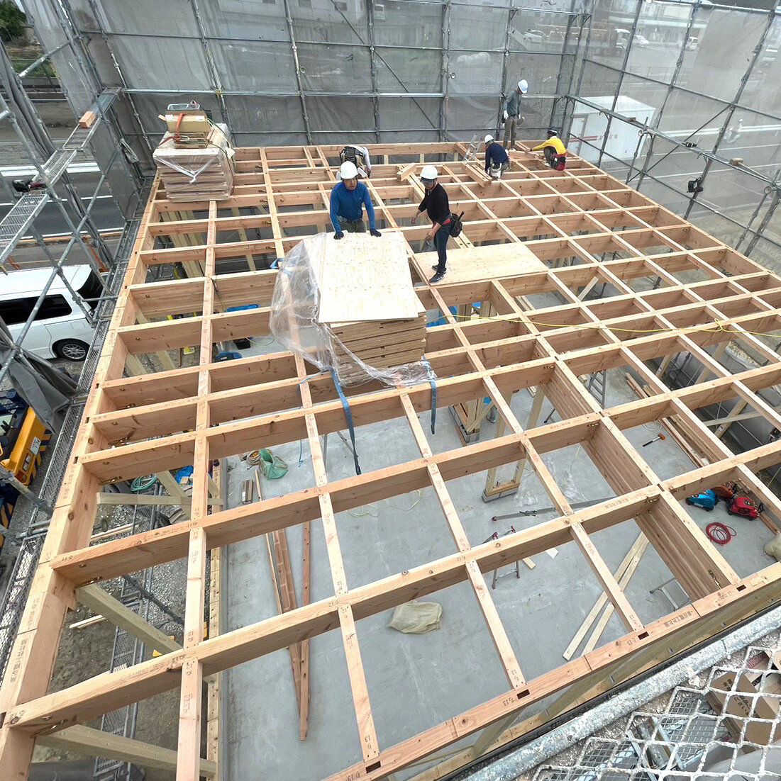 2023年06月30日 美原区 新築工事⑤ こんにちは、萬勝です! 美原区の新築工事、棟上げです。上から2階の床部分を作っていきます。 床完成クレーンで木材を入れます。 建物の形ができてきました。 会社屋の新築なので住宅とは少し違い、広く大きな作りになっています。 住宅を始め、店舗、会社社屋、事務所等、どんな建物でも承ります。 機能的でオシャレなデザイン、おまかせください。 最後まで読んでいただきありがとうございました。 カテゴリなしの他の記事 < 前の記事次の記事 > コメント コメントフォーム 名前 コメント 評価する リセット リセット 顔 星 投稿する 情報を記憶