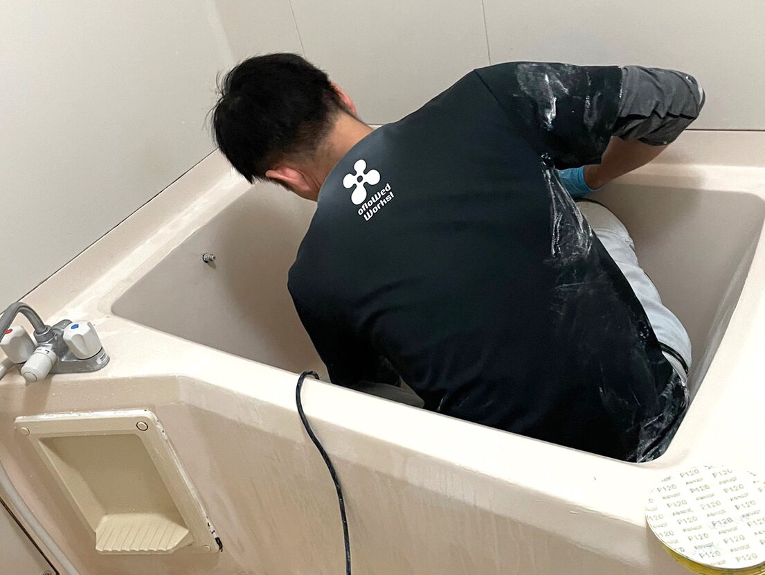 傷つき汚れた浴室や浴槽を再生させる工法です。