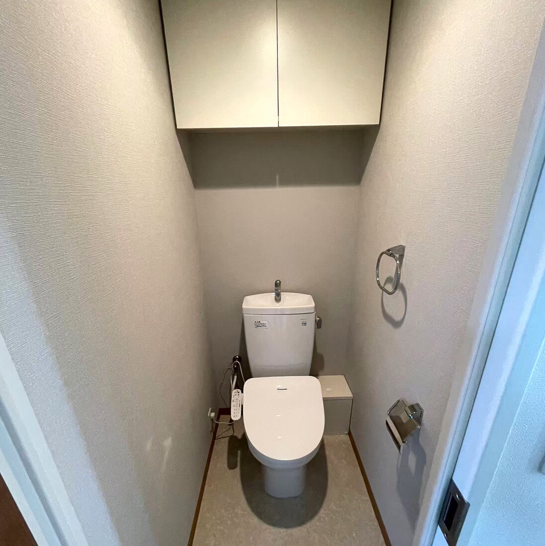 トイレリフォームBeforeクロスと床の張り替え、便座をウォシュレットの便座に取り替えました。