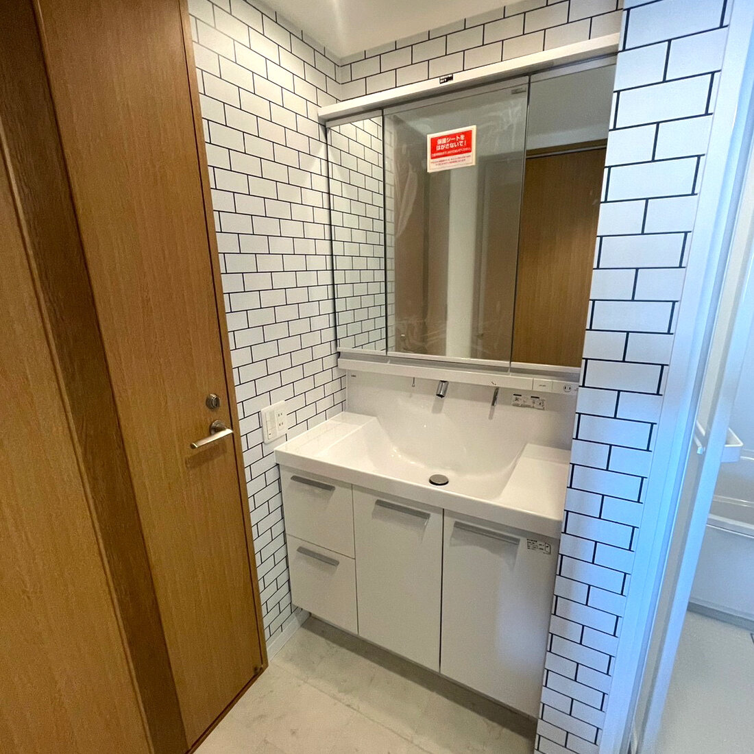 BeforeAfterレンガ調のホワイトのクロスが特徴的です。