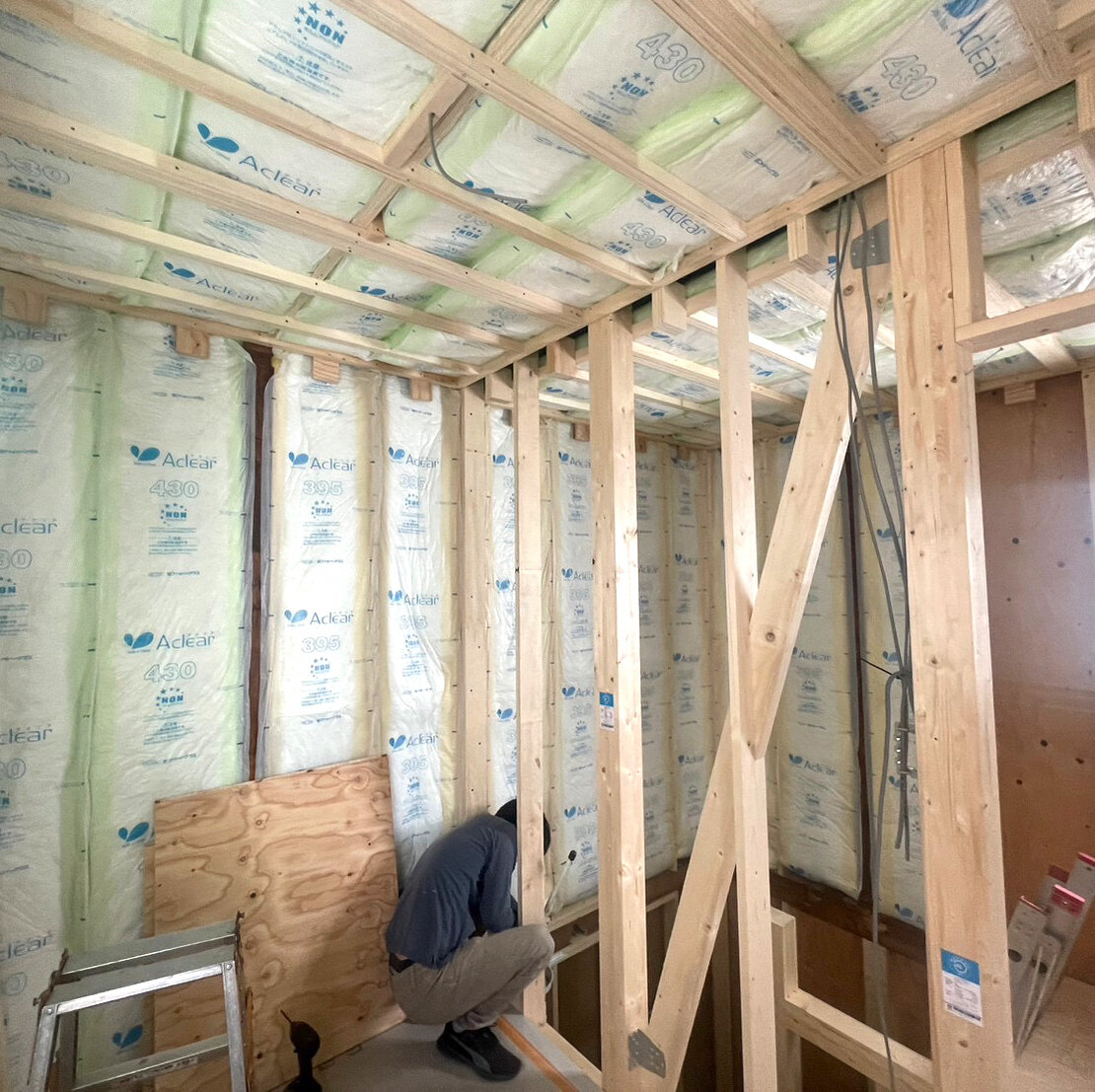 断熱材を施行していきます壁板や床板を設置します