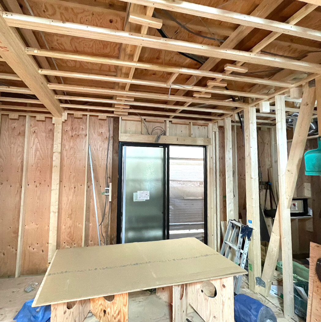 住宅のリノベーション工事、前回ご紹介した隣の住宅と接している壁です柱を共有しています、壁もです
