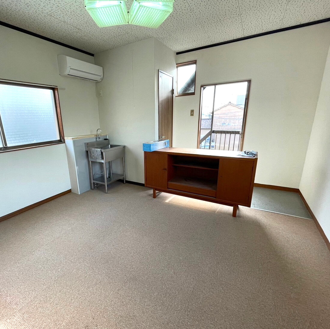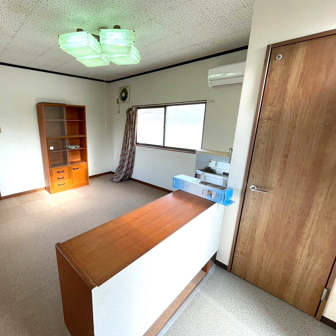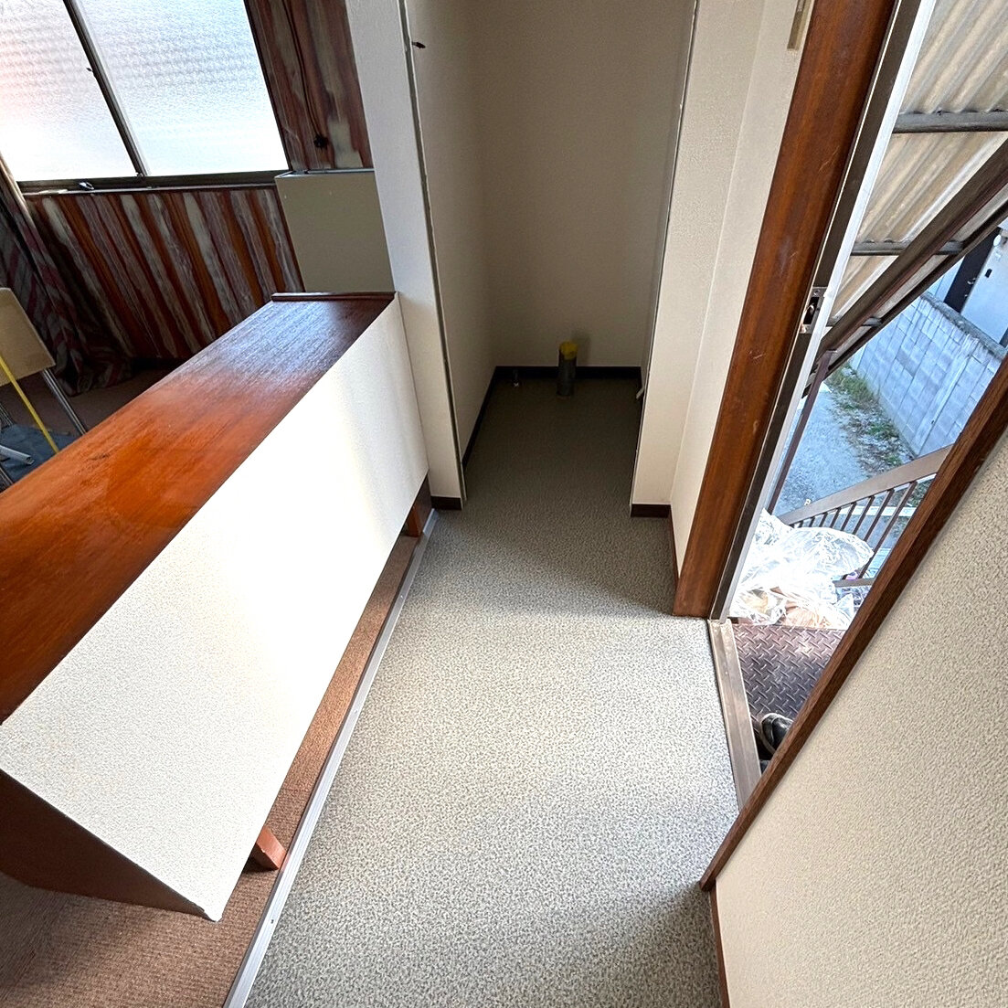 玄関口からトイレに向けて、土足スペースになっています部屋の中からエアコンも取り替えています