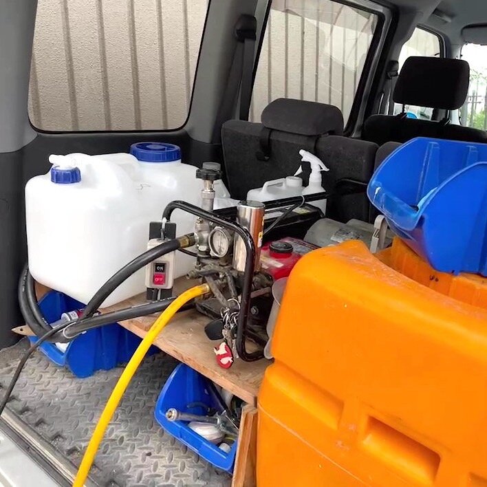 床下をあけ、薬剤を注入していきます