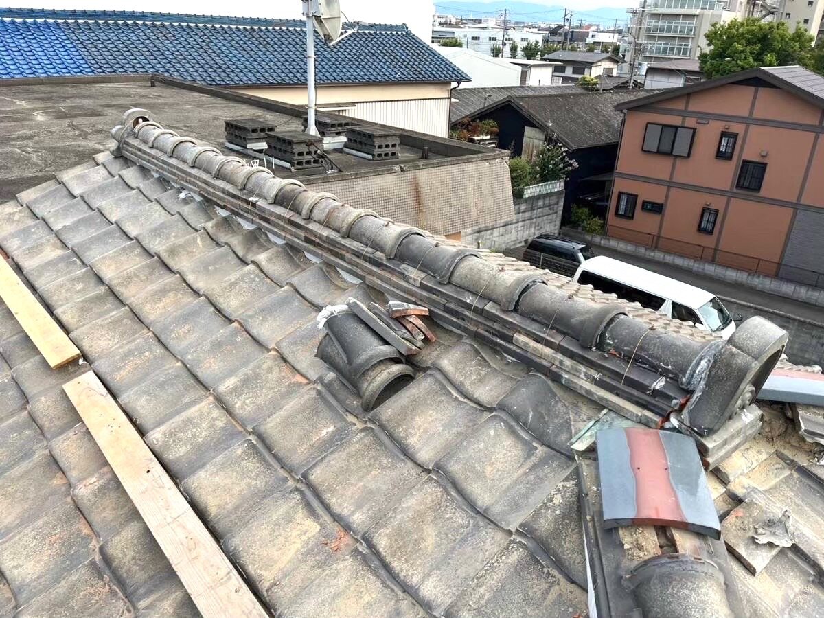 瓦はそのままですが一旦取り外し、下地になる所を補強していますBefore漆喰が劣化していますモルタルで補強します