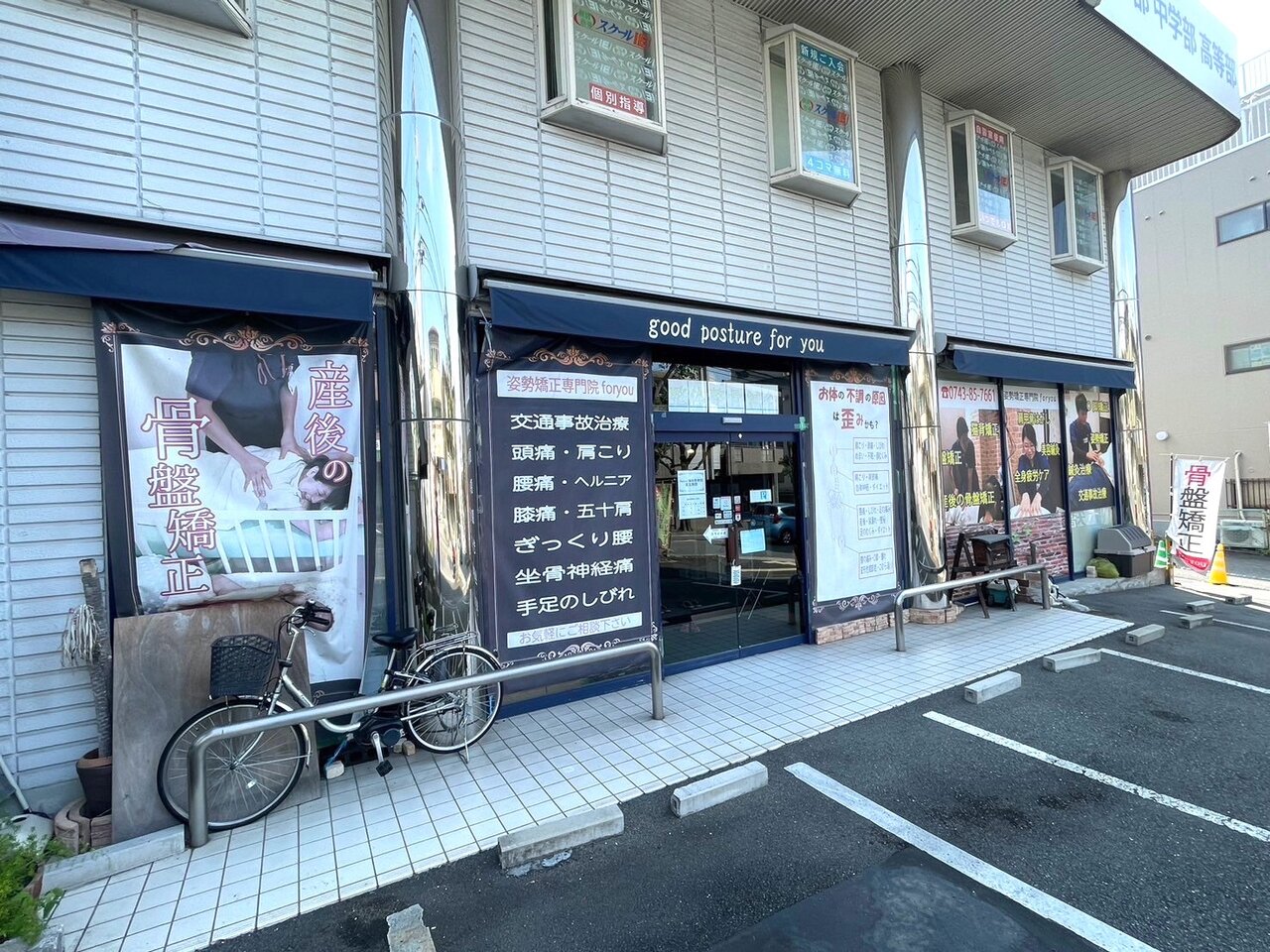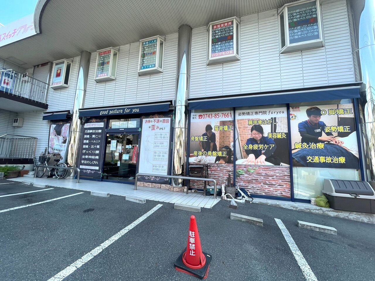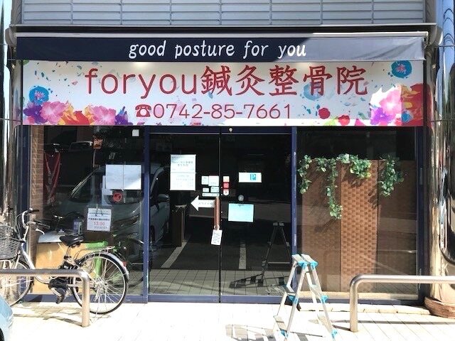 姿勢矯正専門foryou鍼灸整骨院 東生駒院の表ガラスにカッティングシートを施行しました