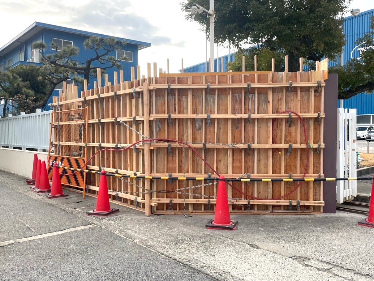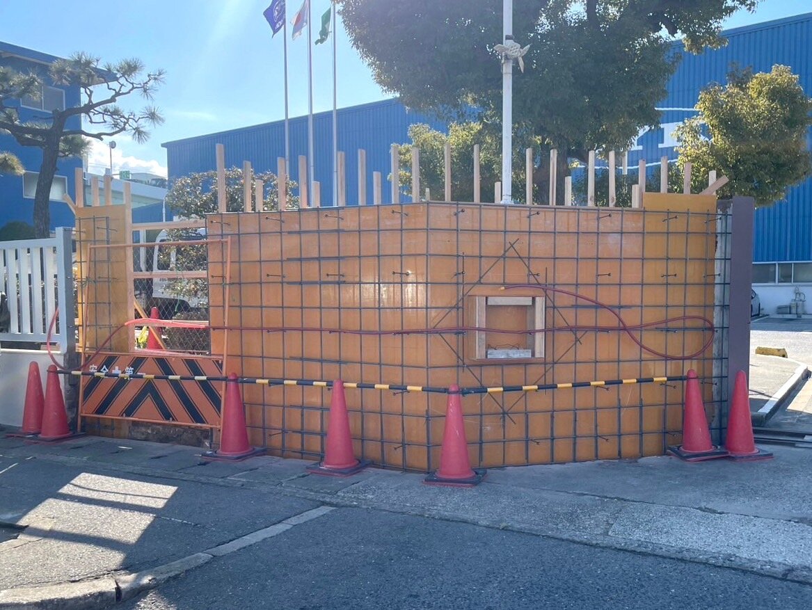 会社の大きな門壁なので 規模の大きな工事になりました