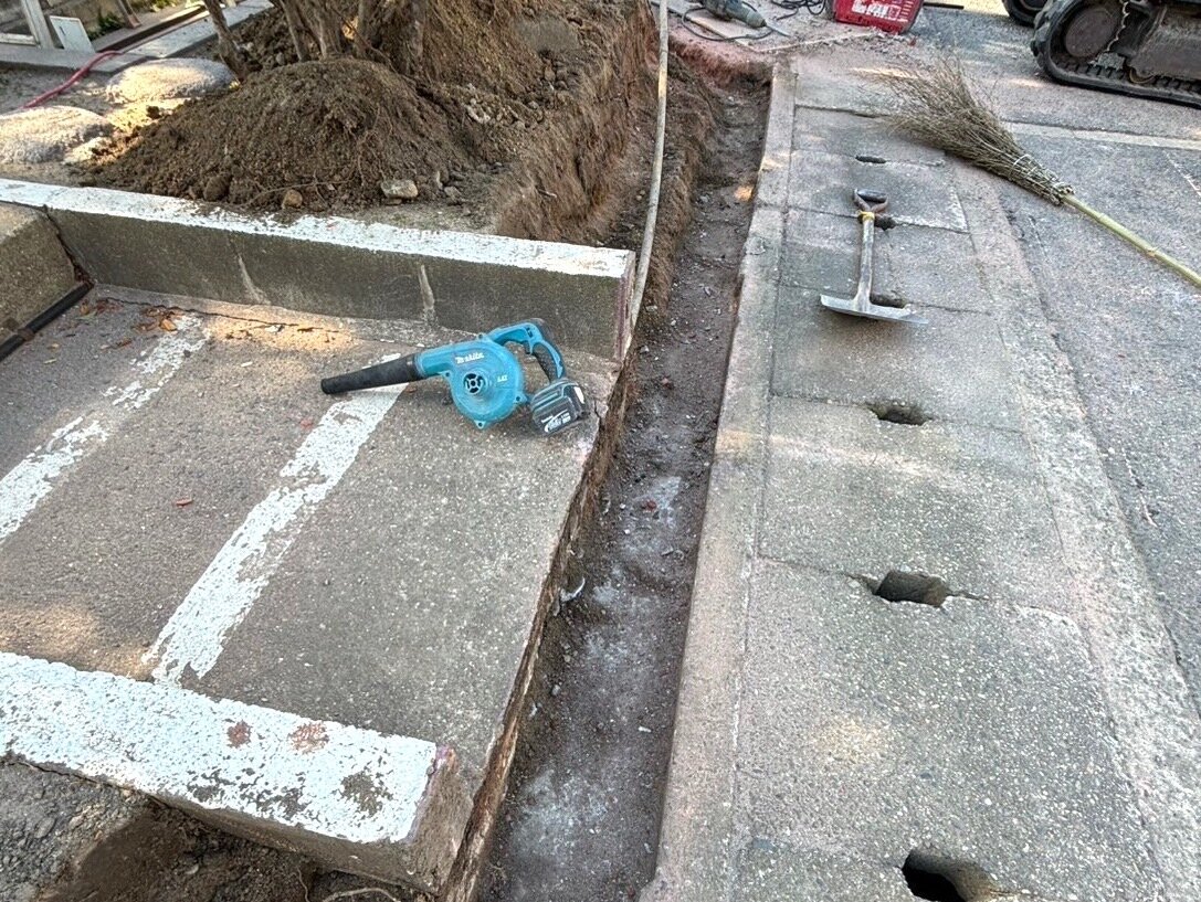 細かいところは手作業で無くなりましたここにコンクリートの壁を作っていきます表から見ると中に入る鉄筋もよく見えています