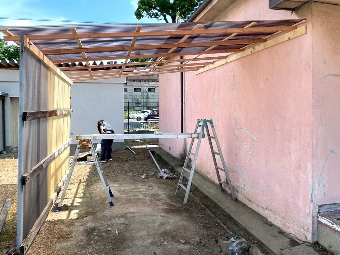 基礎的な壁面・柱は残して屋根を作り替えます屋根を作って完成ですもう危険はありません