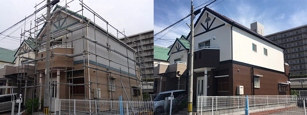 店舗の外壁工事をご紹介しましたが、住宅の屋根・外壁塗装工事も承っております。