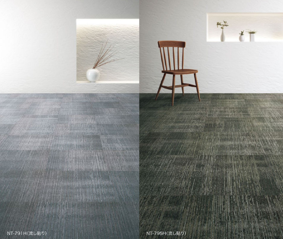 床に敷くタイルカーペットは、カラーもデザインも豊富、また敷き方の工夫で無限にデザインできます!