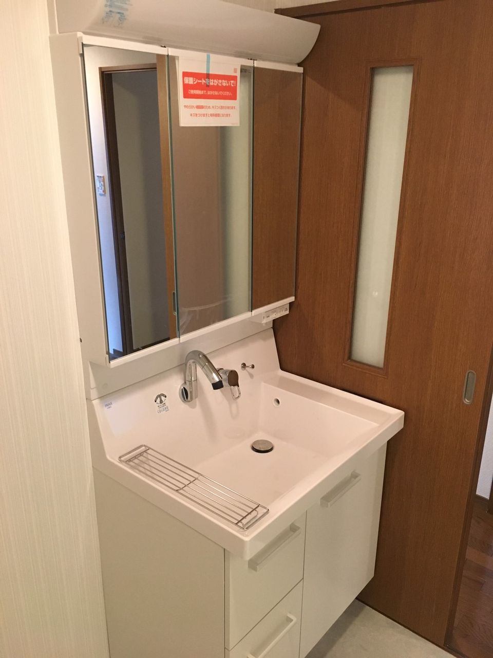 After洗面台の幅は小さく、洗面ボールは大きく使いやすくなり、鏡裏収納で収納力アップです!