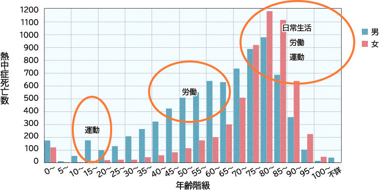 熱中症になりやすい年齢は小さいお子さんや年配の方に多く傾向にあります。