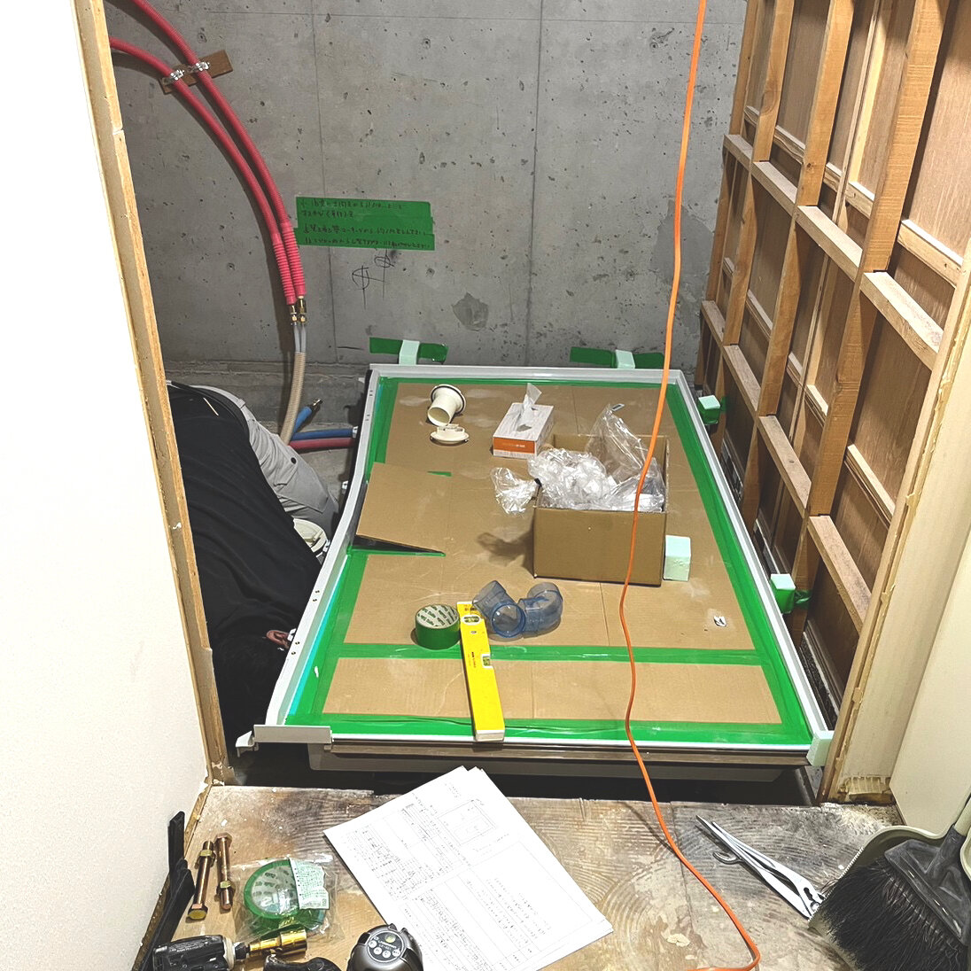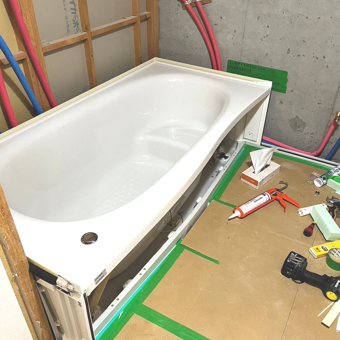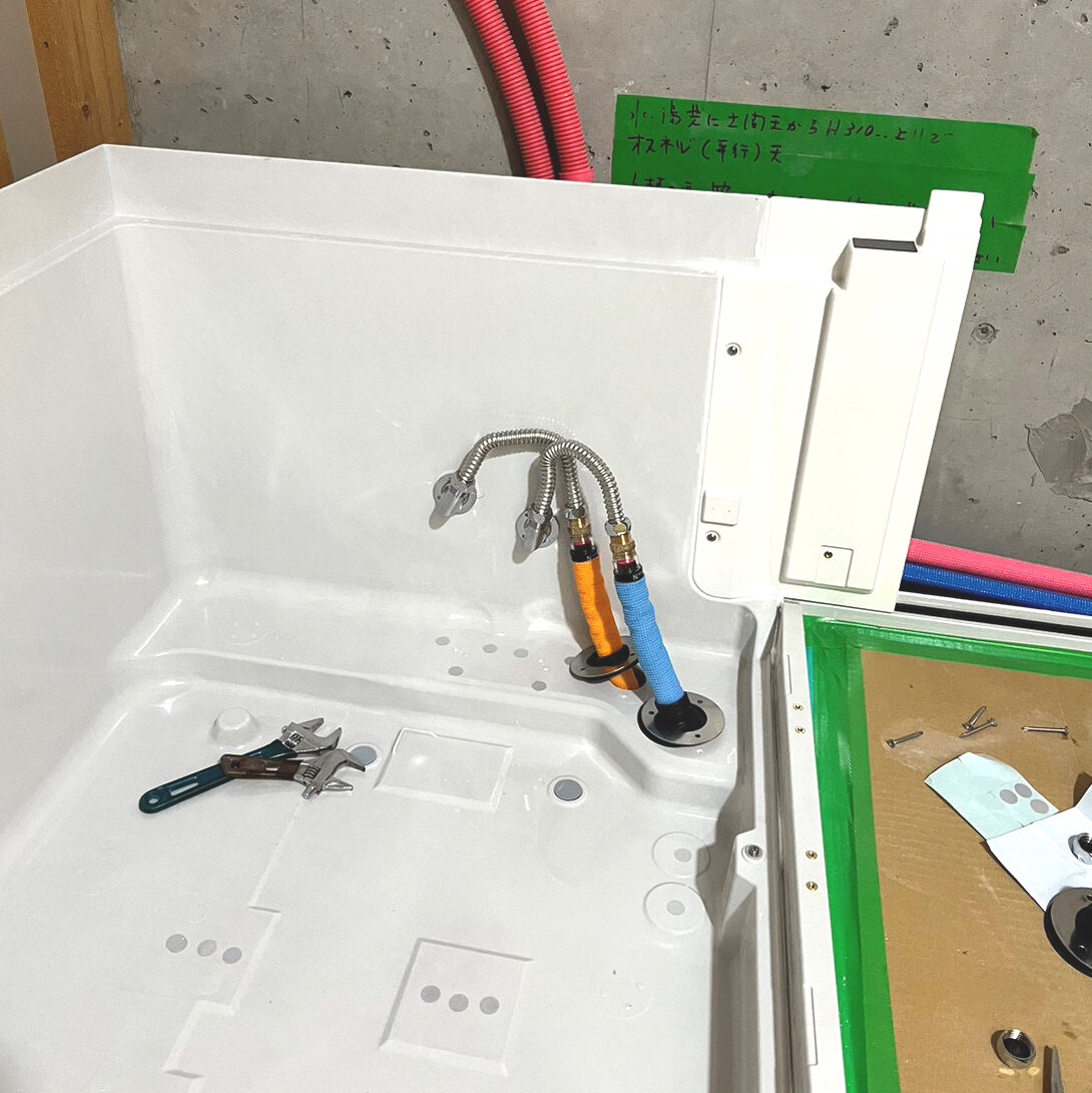 今回の工事も先に浴室内の工事が完了し、後で給湯器の取替となりました。