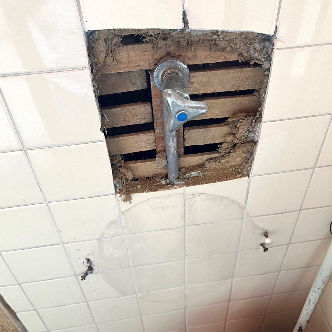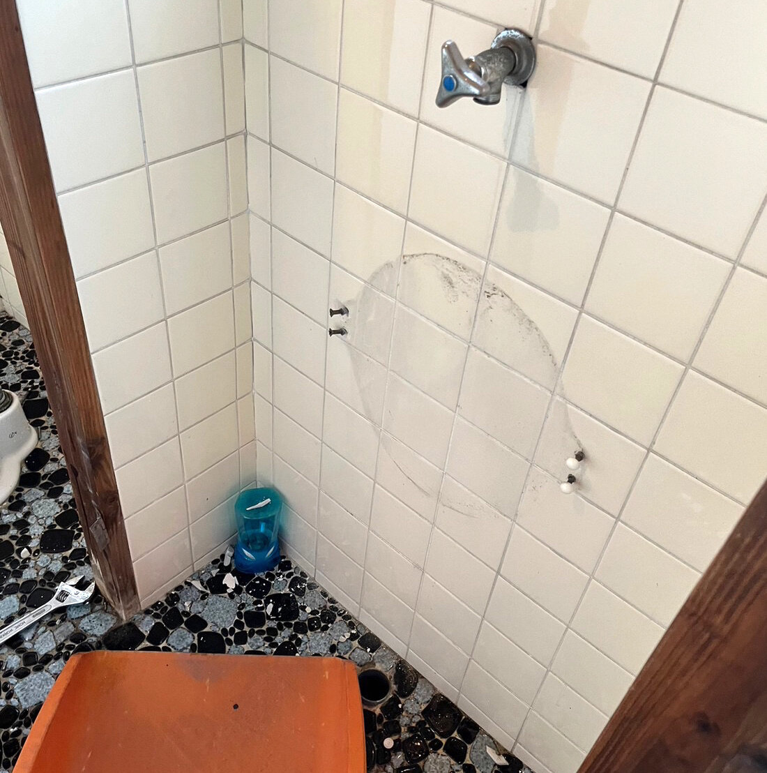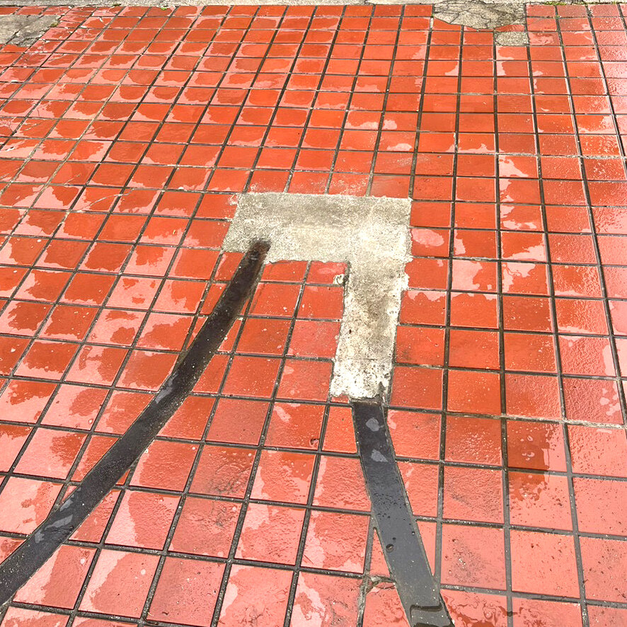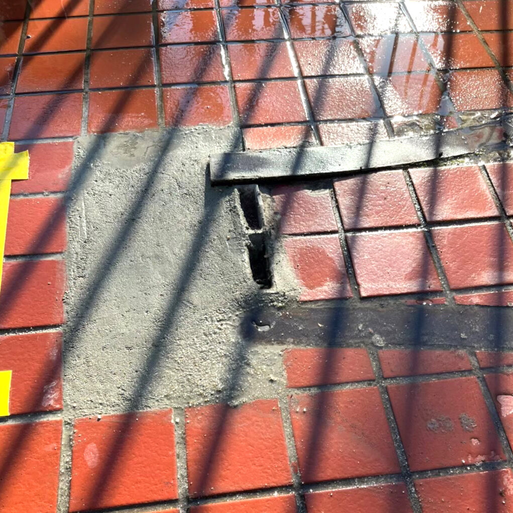 Beforeタイルが剥がれている箇所をキレイにします。タイルを整えます。モルタルで埋めてフラットにします。