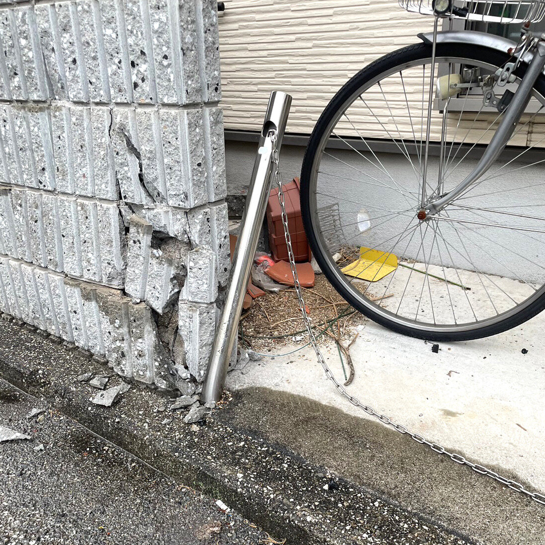 出し入れできるタイプの駐車用バリカーです。キレイに元に戻りました。