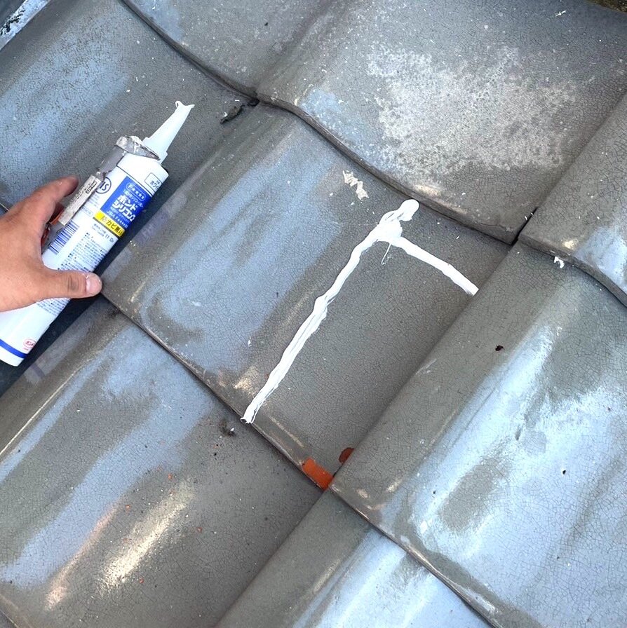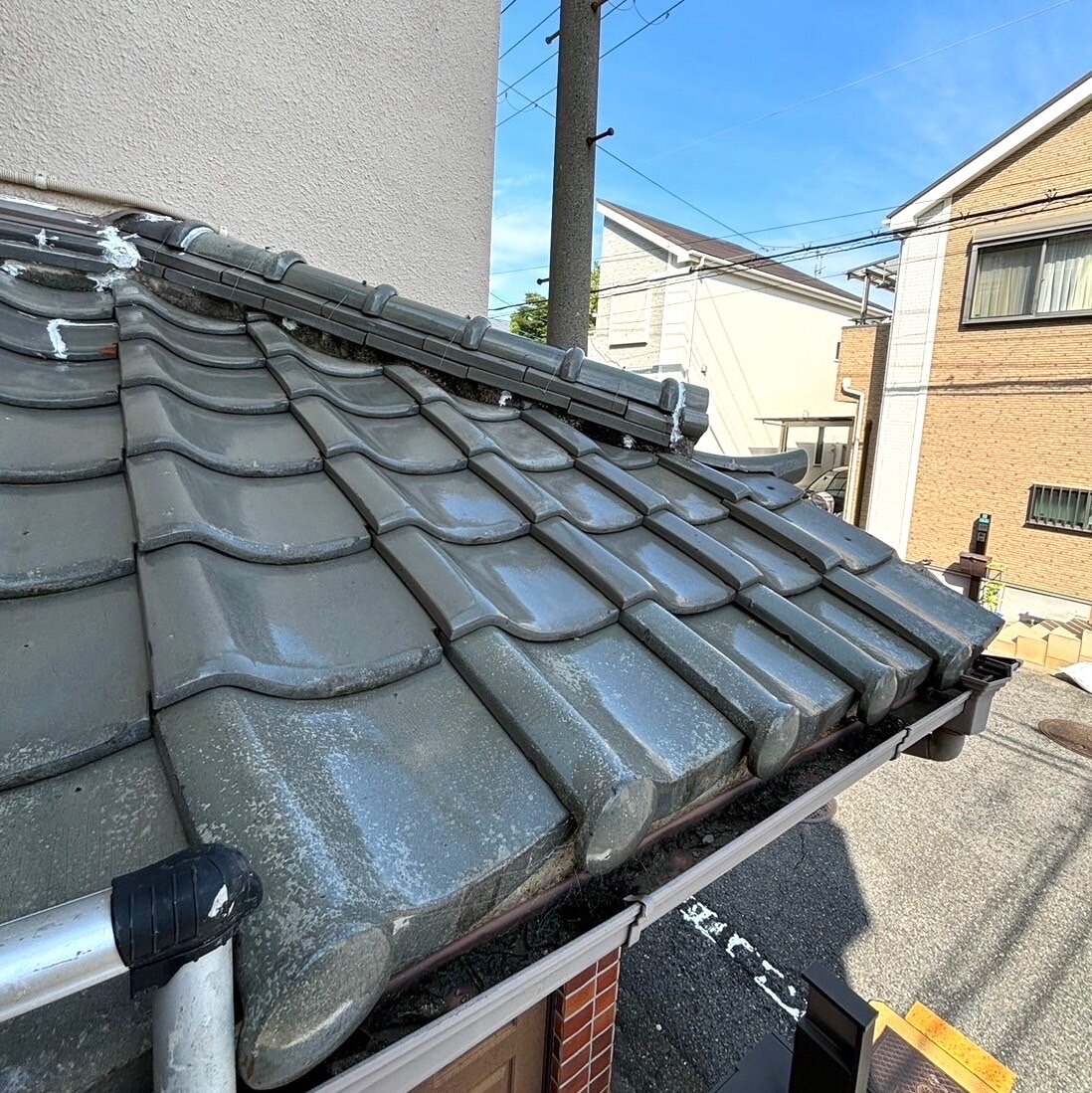 瓦屋根の割れたところはしっかり補修、これで安心です住宅の全体的な屋根は簡単な補修で対応し、玄関上の屋根葺き替え工事でした