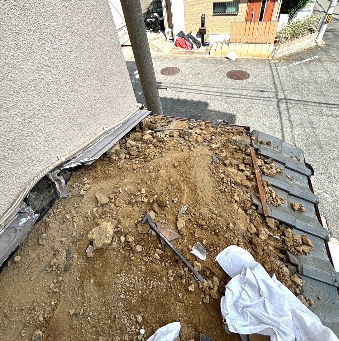 Before瓦を取り除き土を取り除き板張りします瓦だと屋根の上にこんな厚みが出るんですね防水シートを施行壁面もしっかり塗装して完成です