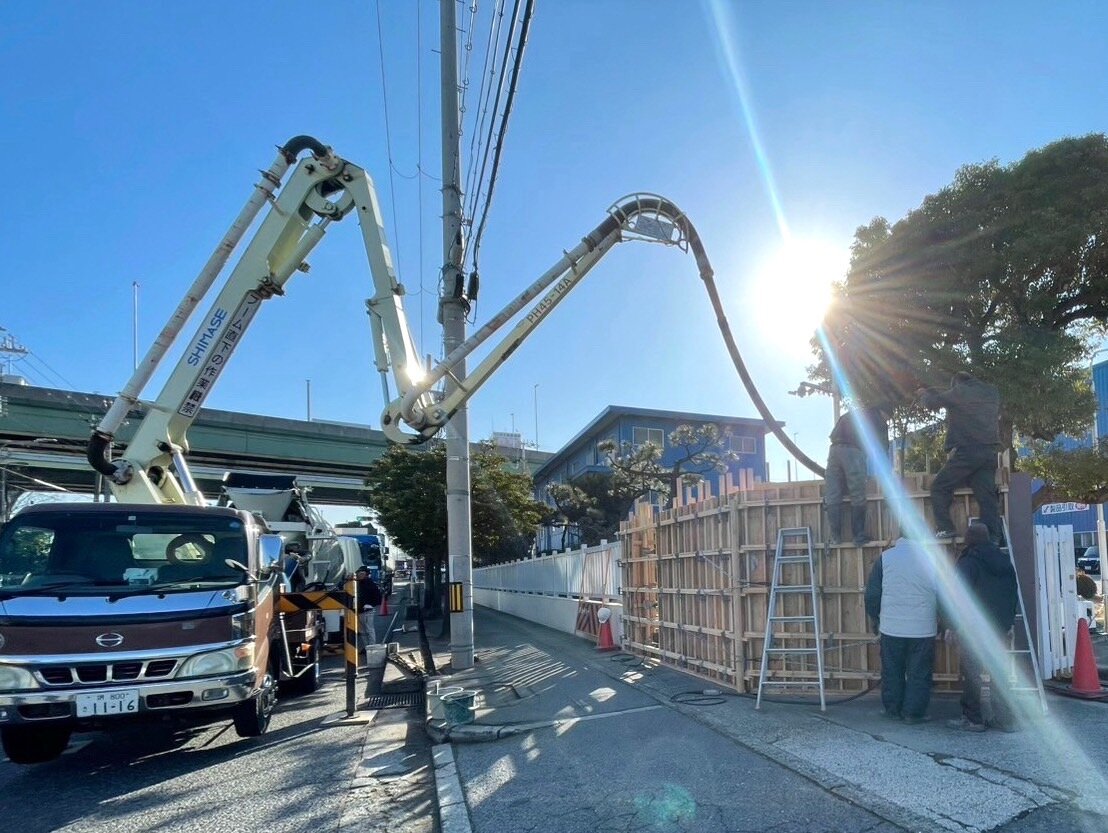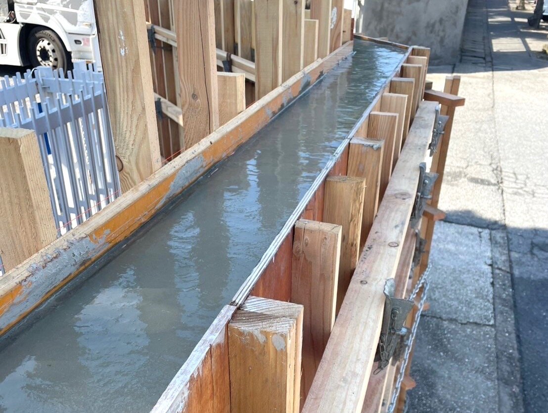 木製枠で囲ってコンクリートを流し入れます