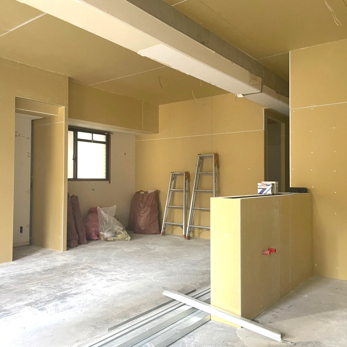 既に昭和なマンションの雰囲気は無くなり、だんだんと部屋の形が見えてきました。