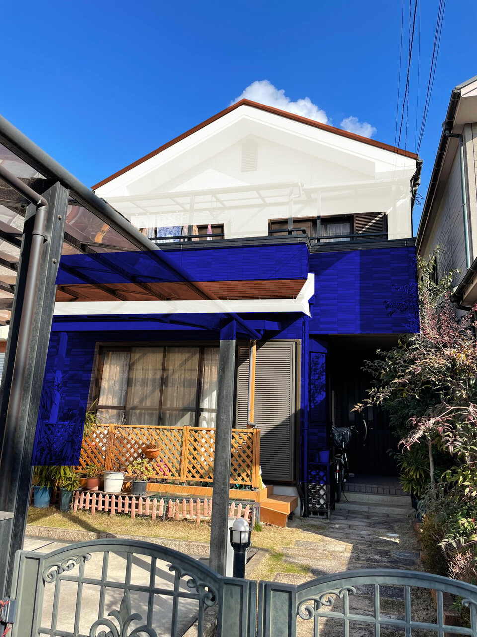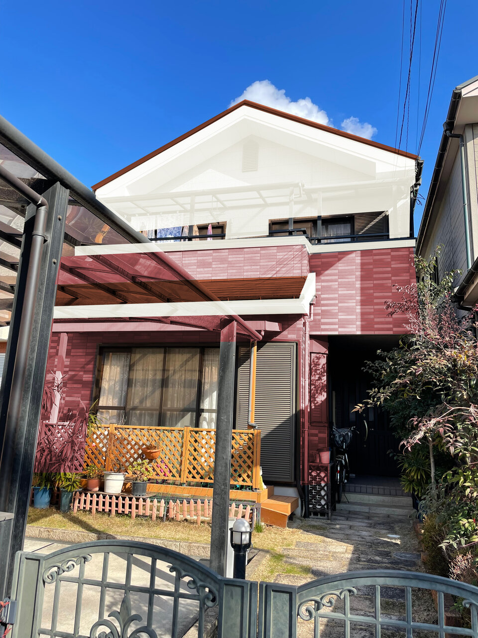 堺市の住宅で屋根・外壁塗装工事が行われています。
